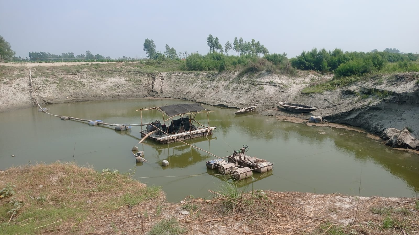 কাজিপুরে চরাঞ্চলে ফসলি জমিতে বাংলা ড্রেজার : প্রতিবাদে মানববন্ধন