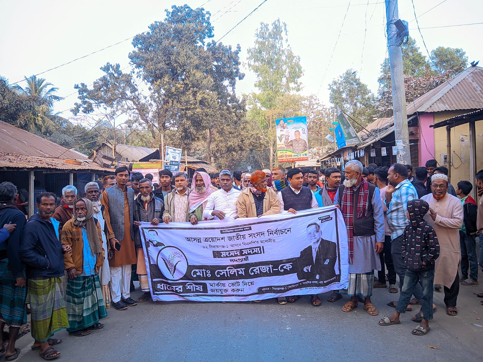 কাজিপুরে ধানের শীষের গণসংযোগে নেতাকর্মীরা