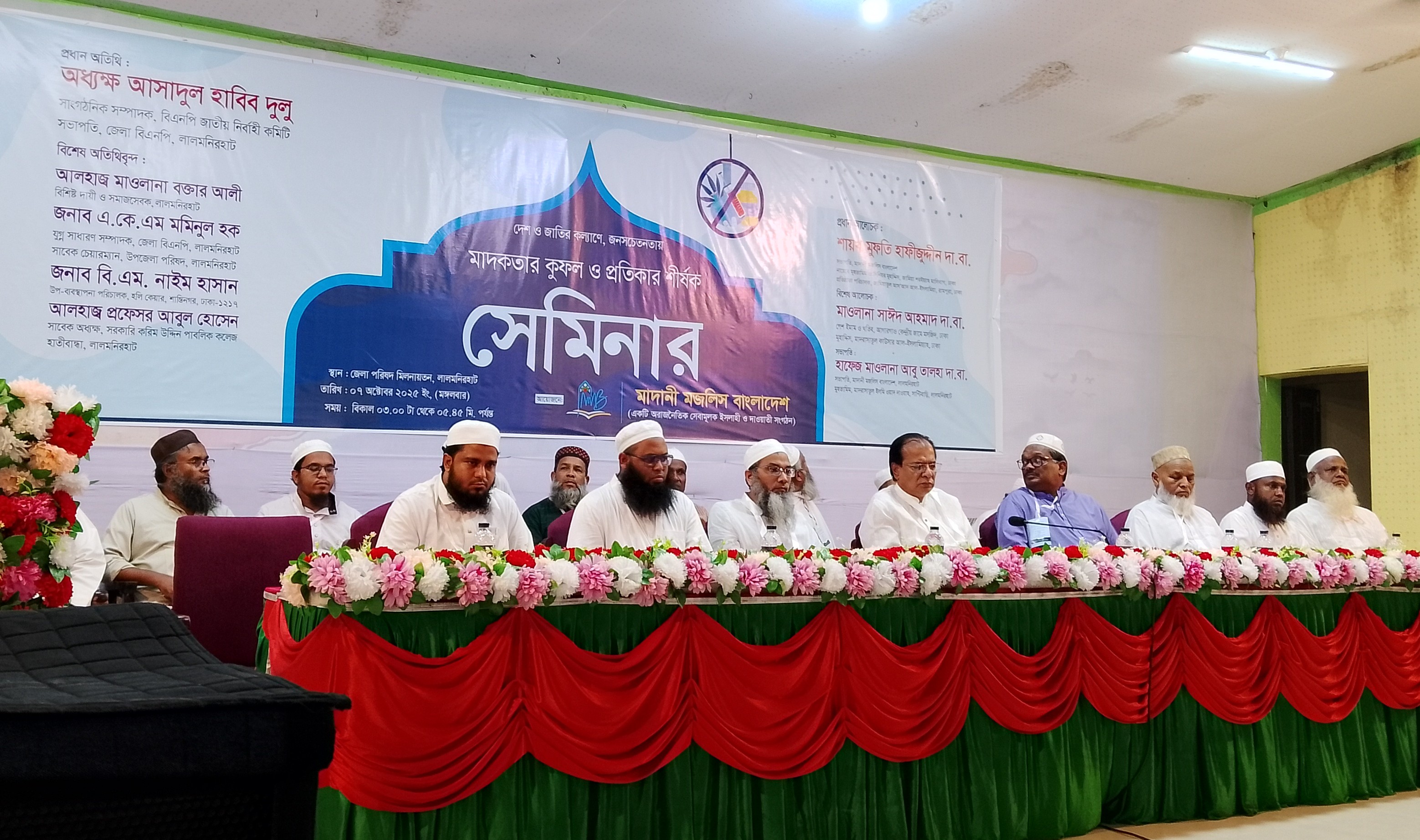 মাদানী মজলিস বাংলাদেশ লালমনিরহাট জেলা শাখার আয়োজনে “দেশ ও জাতির কল্যাণে মাদকতার কুফল ও প্রতিকার” শীর্ষক সেমিনার অনুষ্ঠিত হয়েছে।