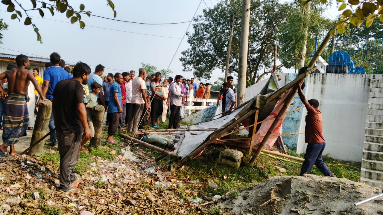 সরেজমিনে ঘটনা স্থলে গিয়ে দেখা গেছে শারদীয় দুর্গা পুজা উপলক্ষে টানা ৪ দিনের সরকারী ছুটি থাকার সুযোগে পানি উন্নয়ন বোর্ডের (পাউবো)-র তুহিন বাজার সংলগ্ন মেইন ক্যানেল হতে অতিরিক্ত পানি নিষ্কাশনের জন্য নির্মিত আার টি স্কেপের লোহার বেড়ায় ঘিরে রাখা সংরক্ষিত স্পর্শকাতর এরিয়ার মধ্যে পাকা স্থাপনা নির্মাণ করে।অবৈধভাবে অবৈধভাবে নির্মিত পাকাঁস্থাপনাটি ভেঙ্গে দেয়া হয়েছে।