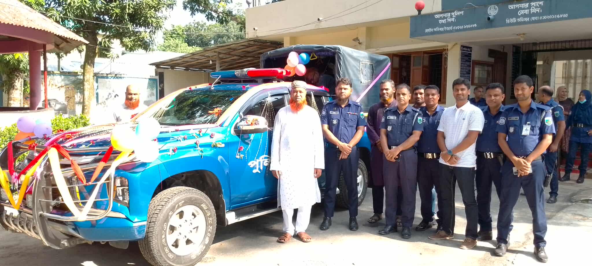 ধুনটে সাজানো গাড়িতে পুলিশ সদস্যের রাজকীয় বিদায়