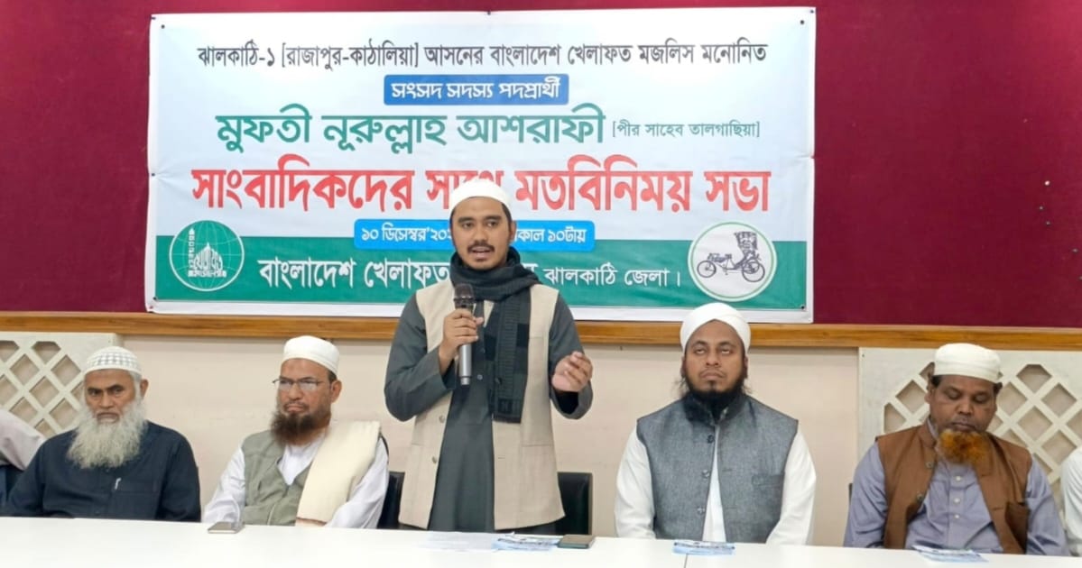 ঝালকাঠি-১ আসনে খেলাফত মজলিসের প্রার্থী মুফতি নূরুল্লাহ আশরাফীর মতবিনিময়