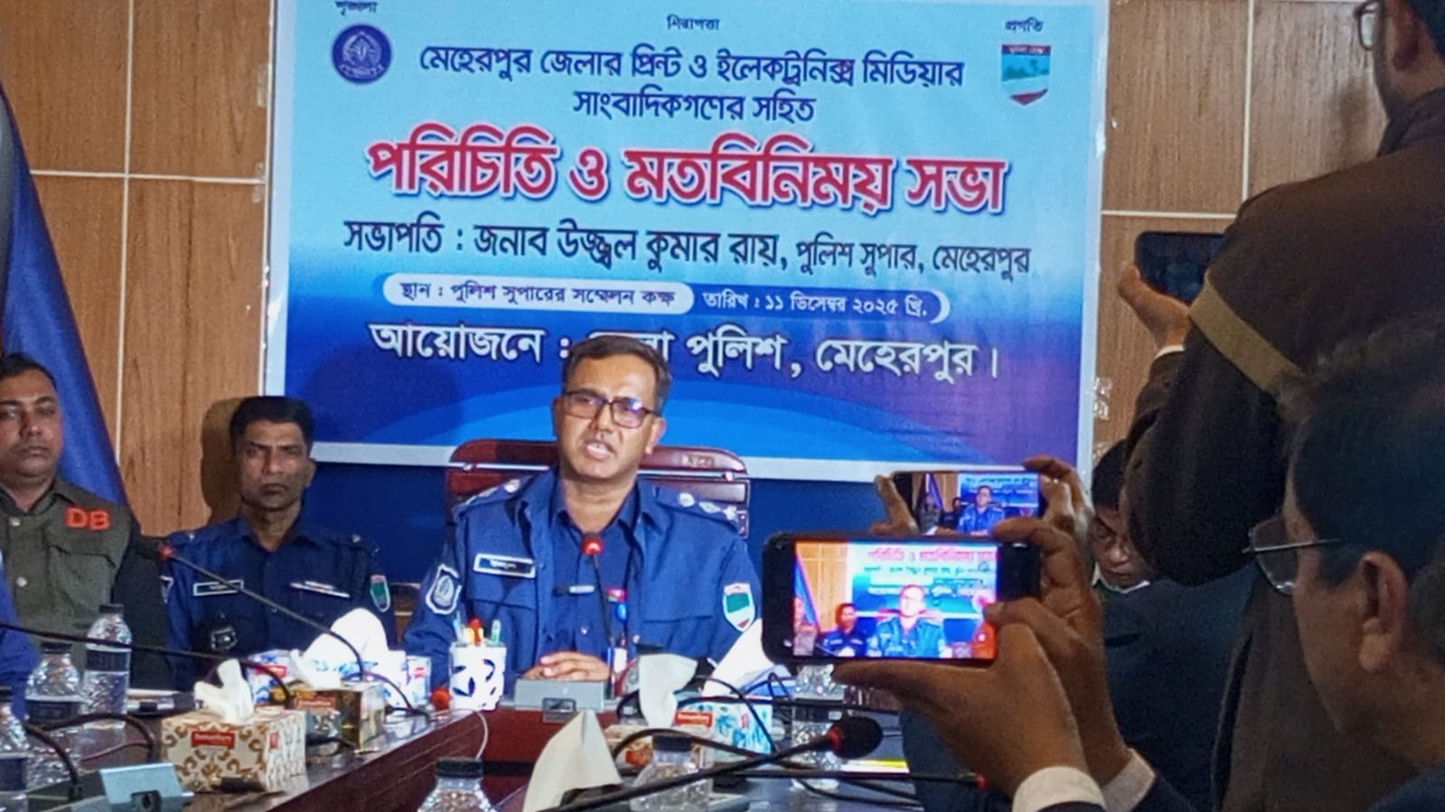মেহেরপুরে সাংবাদিকদের সাথে মত বিনিময় করলেন নাবাগত পুলিশ সুপার উজ্জ্বল কুমার রায়