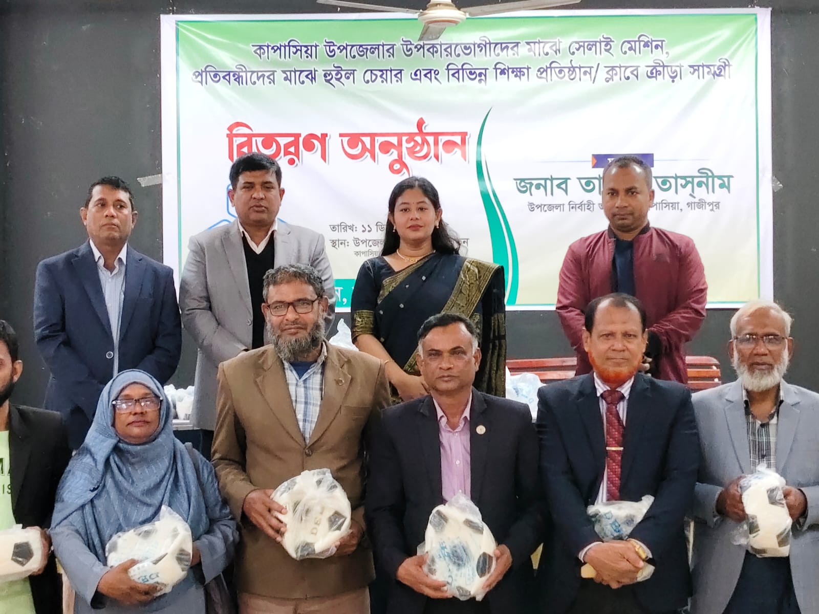 এস এম মাসুদ কাপাসিয়া (গাজীপুর) প্রতিনিধি: গাজীপুরের কাপাসিয়ায় দুস্থ ও প্রতিবন্ধীদের চলাচলের সুবিধার্থে সেলাই মেশিন, হুইলচেয়ার এবং যুব সমাজকে খেলাধুলায়