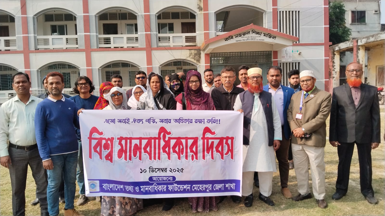 এস এ খান শিল্টু মেহেরপুর প্রাতিনিধি : বিশ্ব মানবাধিকার দিবস-২০২৫ উপলক্ষে মেহেরপুরে বর্ণাঢ্য র্যালি, আলোচনা সভা এবং দুঃস্থ ছাত্রীদের মাঝে
