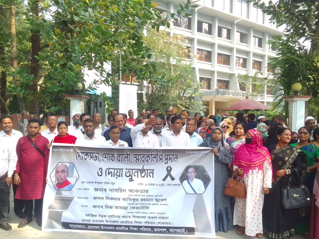 রামপালে শিক্ষকের মৃত্যুতে উপজেলা প্রাথমিক শিক্ষা পরিবারের শোকসভা ও স্বারকলিপি প্রদান