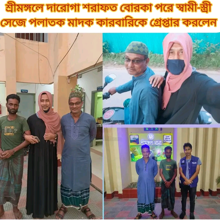 শ্রীমঙ্গলে এক দারোগা বোরকা পরে স্বামী-স্ত্রী সেজে পলাতক মাদক কারবারিকে গ্রেপ্তার
