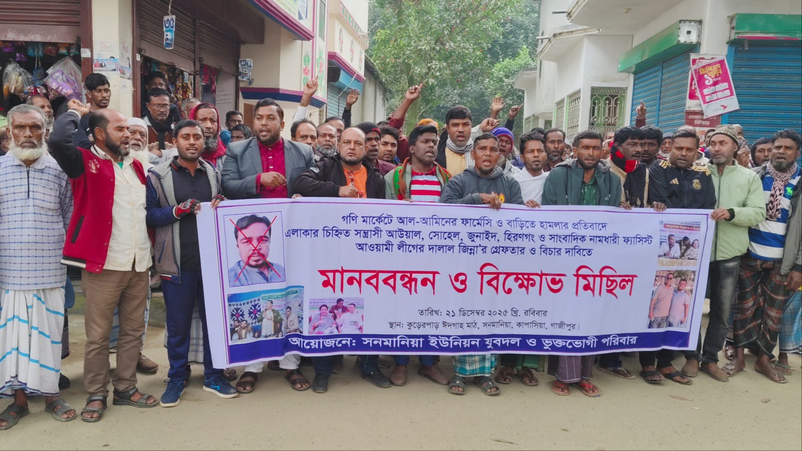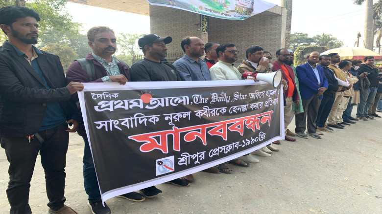 প্রথম আলো ও ডেইলি স্টার অফিসে হামলার প্রতিবাদে শ্রীপুরে মানববন্ধন