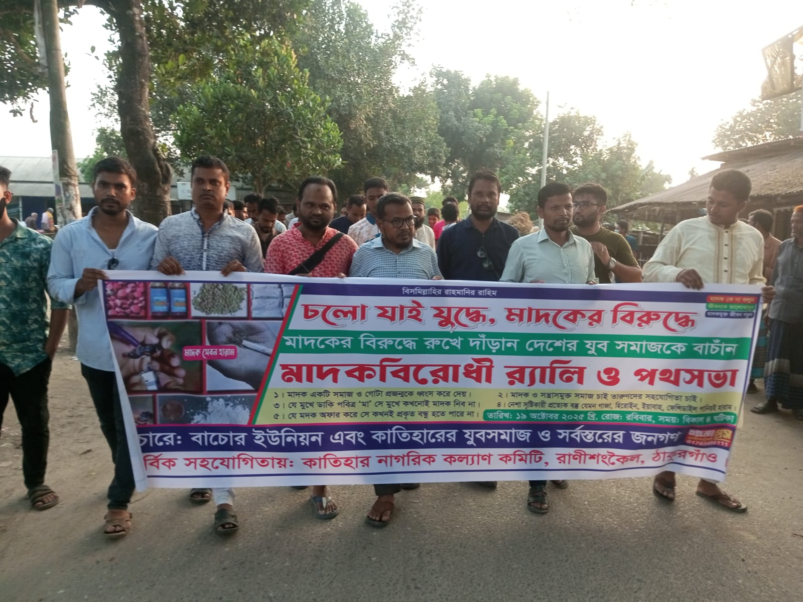 রাণীশংকৈলে মাদকের বিরুদ্ধে বিক্ষোভ মিছিল ও পথসভা অনুষ্ঠিত