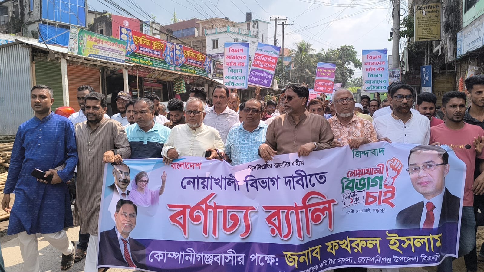 নোয়াখালী বিভাগের দাবিতে কোম্পানীগঞ্জে মানববন্ধন ও বর্ণাঢ্য র্যালি