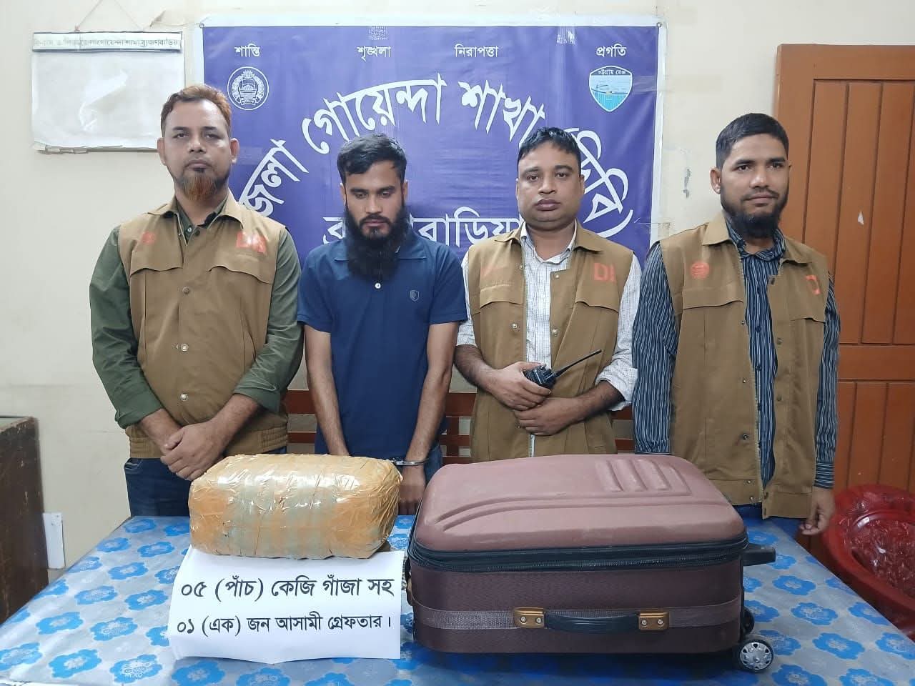 ব্রাহ্মণবাড়িয়ায় ডিবি পুলিশের অভিযানে ৫ কেজি গাঁজা উদ্ধার, গ্রেফতার ১