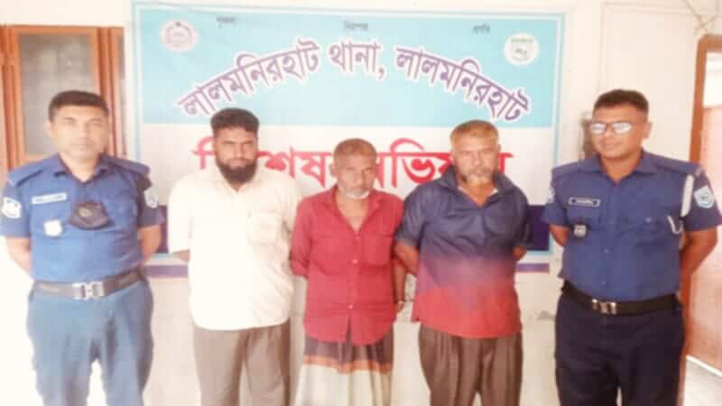 লালমনিরহাটে তামাকবাহী ট্রাক থেকে গাঁজাসহ তিন জন মাদক ব্যবসায়ী আটক