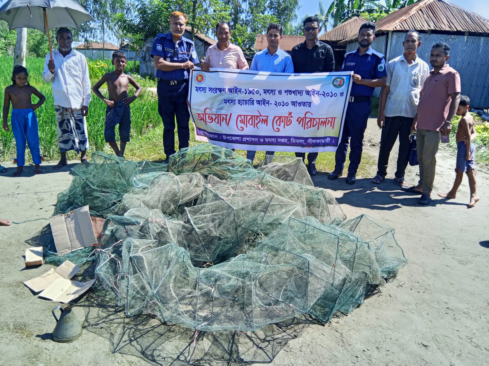 ডিমলায় মোবাইল কোর্টের মাধ্যমে ১০০০মিটার অবৈধ্য চায়না দুয়ারী (কারেন্ট) জাল পু’ড়ি’য়ে ধ্বংস
