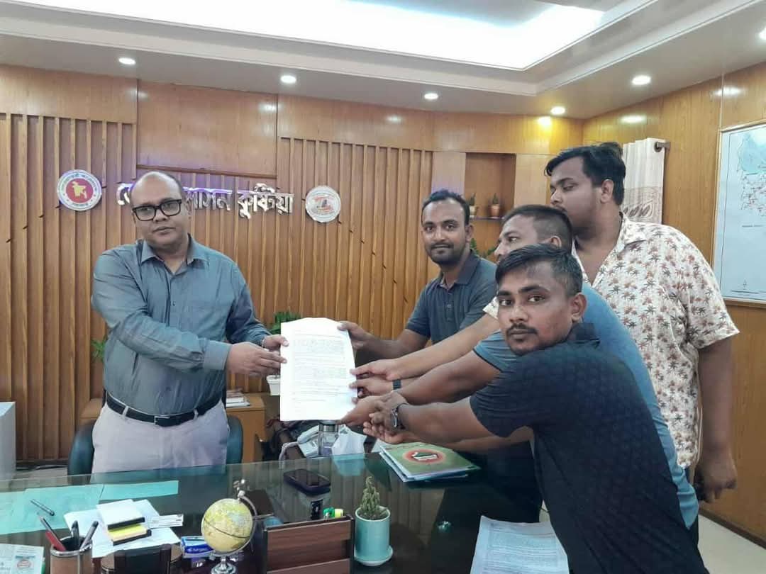 কুষ্টিয়ায় প্রশাসনিক কর্মকর্তার বিরুদ্ধে মানববন্ধন ও স্মারকলিপি প্রদান