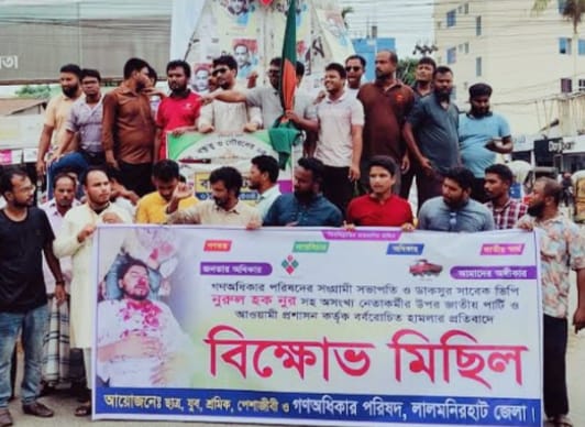 ভিপি নূরের উপর হামলার প্রতিবাদে লালমনিরহাটে বিক্ষোভ ও সমাবেশ
